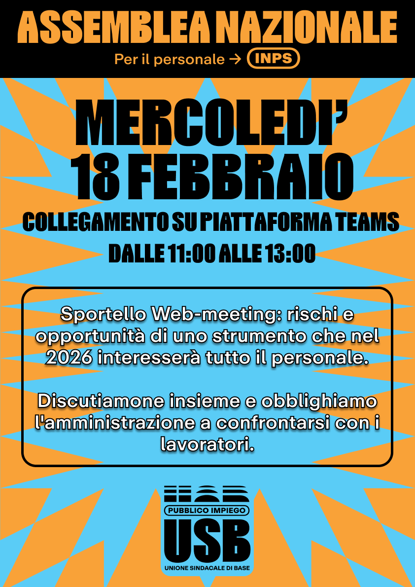 SPORTELLO WEB MEETING Assemblea della USB mercoledì 18 febbraio ore 11 su teams