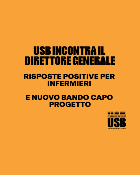 Risultati molto concreti che confermano l’efficacia dell’azione sindacale svolta da USB, che anche fuori dal tavolo riesce a rimediare ai pasticci combinati da chi si gloria del solo fatto di sedersi e non fa gli interessi dei lavoratori. Ora aspettiamo che gli impegni assunti siano rispettati.